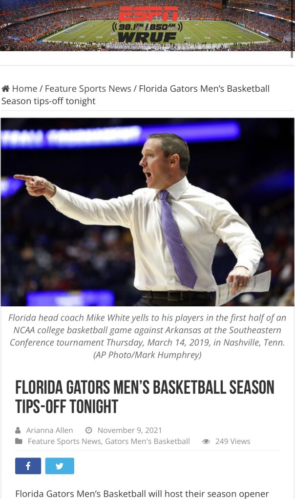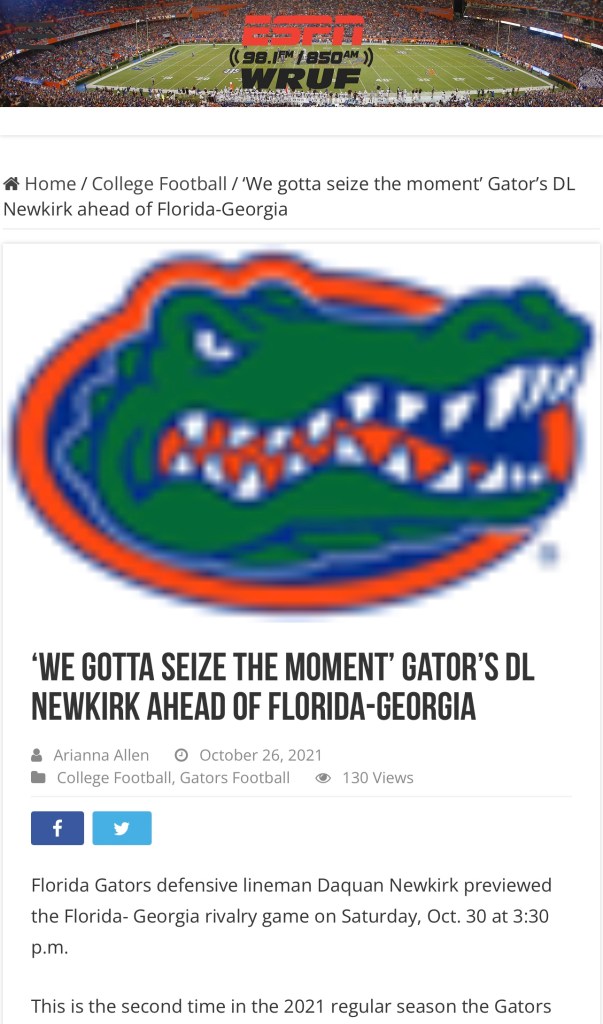 At the University of Florida, I have been involved with the Innovation News Center, specifically, ESPN Gainesville. I have expanded my knowledge in Adobe Audition and WordPress. I have also been involved with FloridaGators.com, the Florida Gators official athletic website. With the Florida Gators, I have covered various sports from golf, to gymnastics to baseball to track and field to basketball to volleyball to football. I have written over 15 articles for the website including deadline side-bar pieces and feature stories. These stories have helped create brand exposure for Florida Athletics.